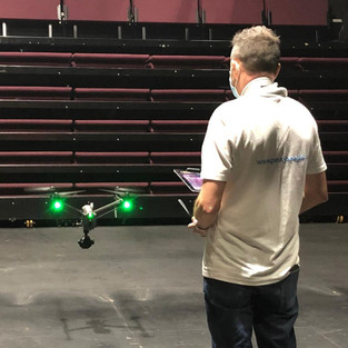 We spent the next few days ripping up the Risk and method statement we had created for the central city site and revisiting it for the new location. We was then dropped the bombshell that they also needed some footage from within the rep theatre! As we were unable to gain access all the initial planning was done with the help of our friend Google. On the day we arrived a few hours early so we could revalue our data having already put into place a "flying indoors plan" based on research and experience - especially due to the lack of GPS signal. Another example was the disabling of the return to home function.. We wouldn't want to be responsible for a major power outage if the drone suddenly lost contact and tried to shoot 100 metres up taking out the lighting in the process!
